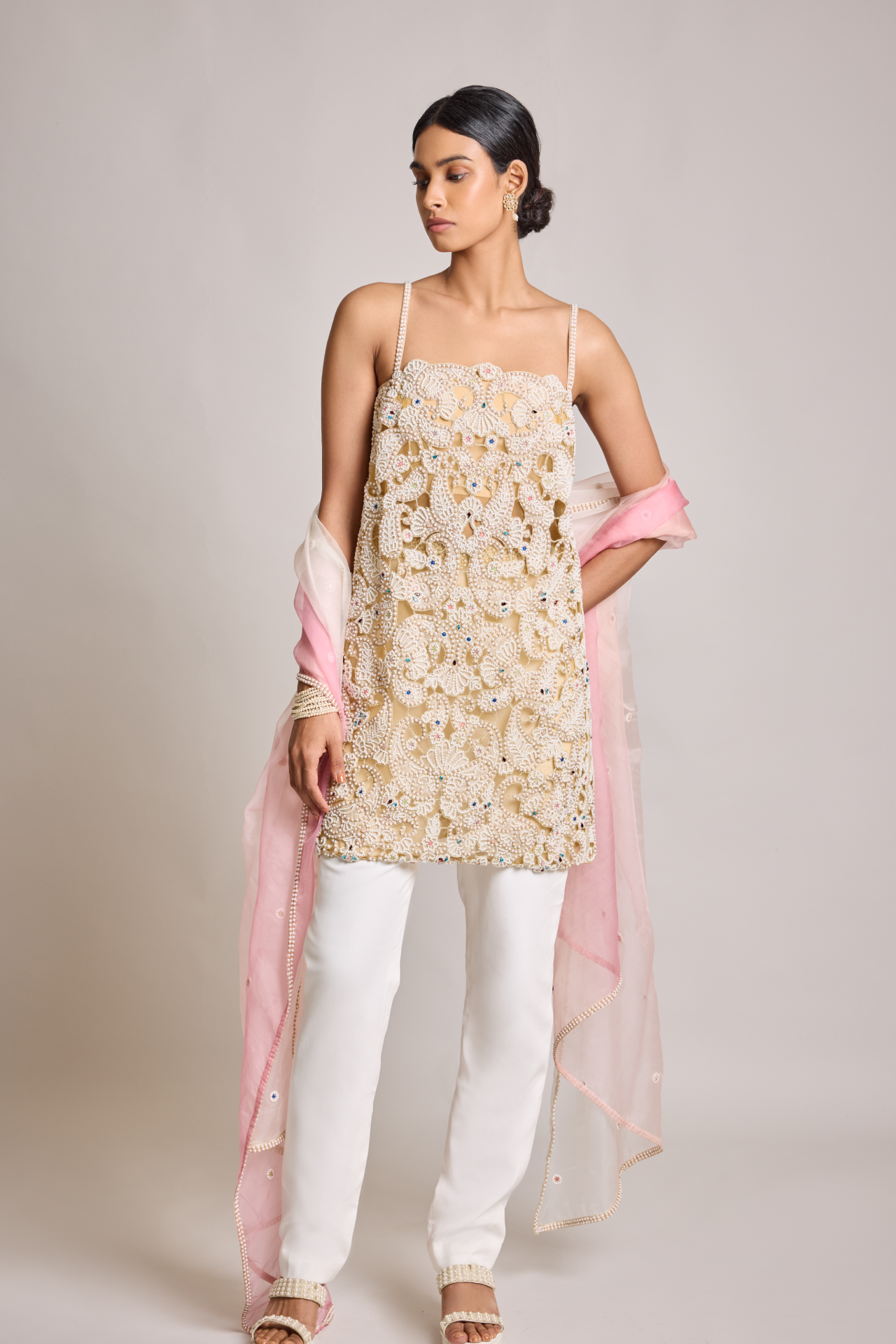 Ivory Pearl Embroidered Sleeveless Tunic