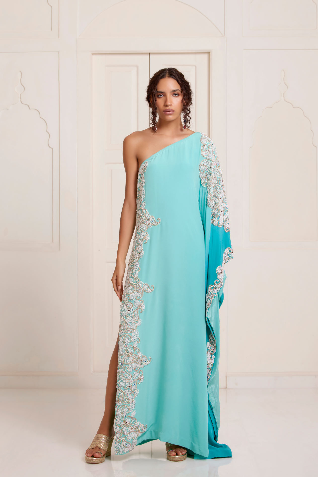 Turquoise Ombre One-Shoulder Kaftan