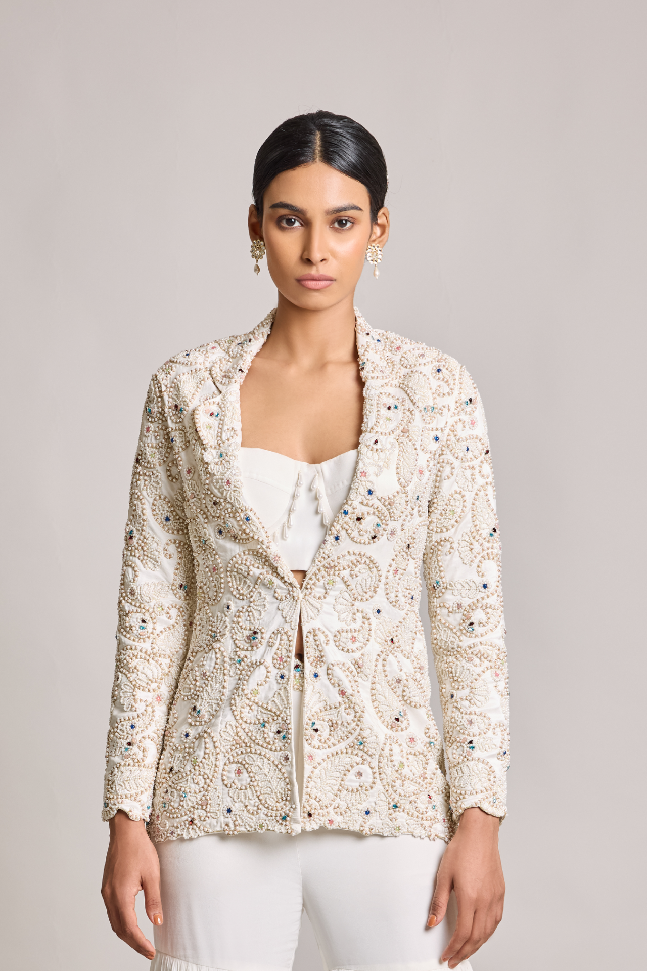 Ivory Jacket with Multicoloured Mirror Work Embroidery